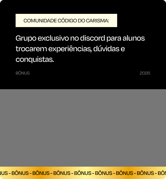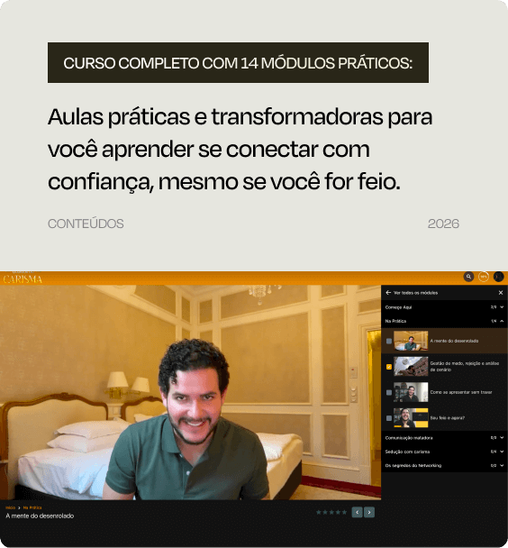 Não é apenas um curso, é um investimento na sua confiança, carisma e habilidade de se conectar com as pessoas de forma genuína. O que você vai aprender aqui ficará com você para sempre.